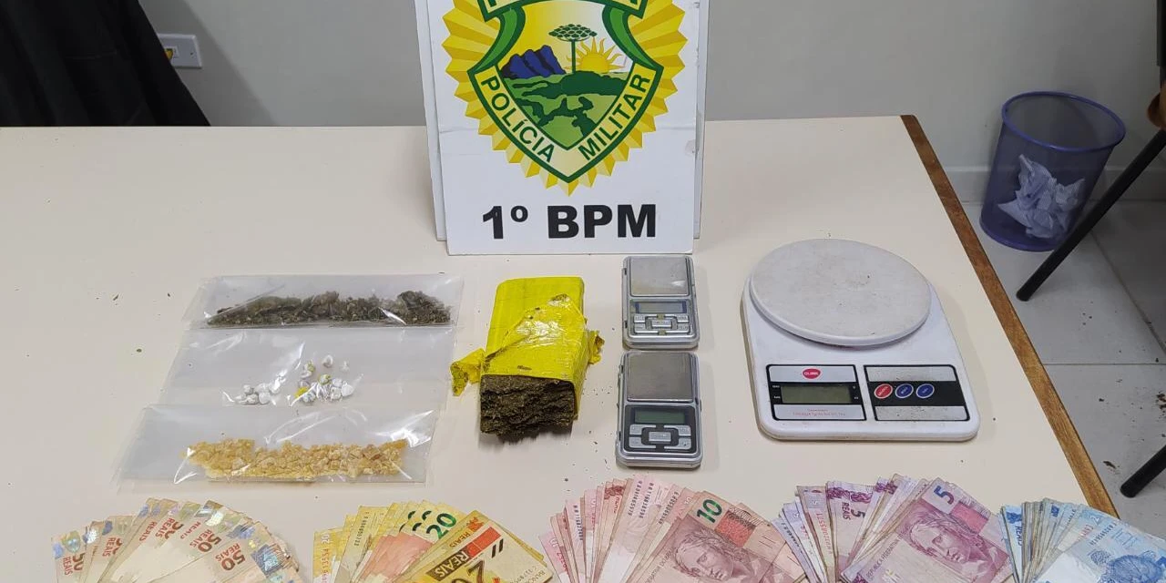 Ao abordar o jovem, os policiais verificaram que constatava um mandado de prisão contra ele pelo crime de tráfico de drogas. Além disso, o rapaz era foragido da Colônia Penal do Paraná. Com o criminoso, a PM encontrou meio tablete de maconha pensando 347 gramas, 35 gramas de crack e dinheiro.