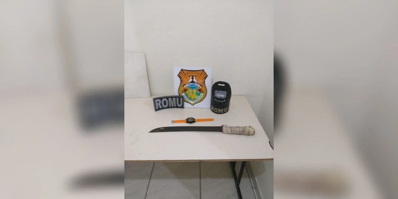 Os guardas encontraram um facão na cintura do homem e ao consultar o nome do abordado no sistema, a GM verificou que havia um mandado de prisão contra o rapaz pelo crime de roubo agravado.
