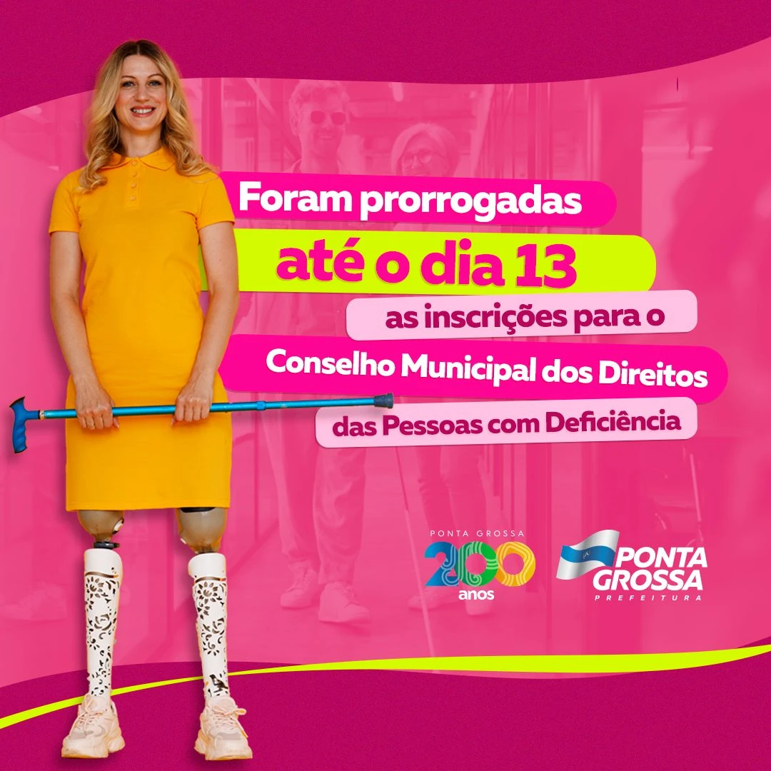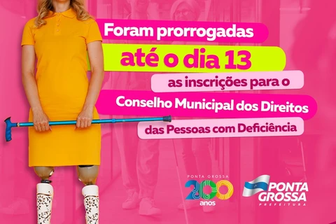 As inscrições podem ser feitas pelo e-mail cons.municipal.direitospcd@gmail.com, ou presencialmente, no prédio da Fundação de Assistência Social de Ponta Grossa.
