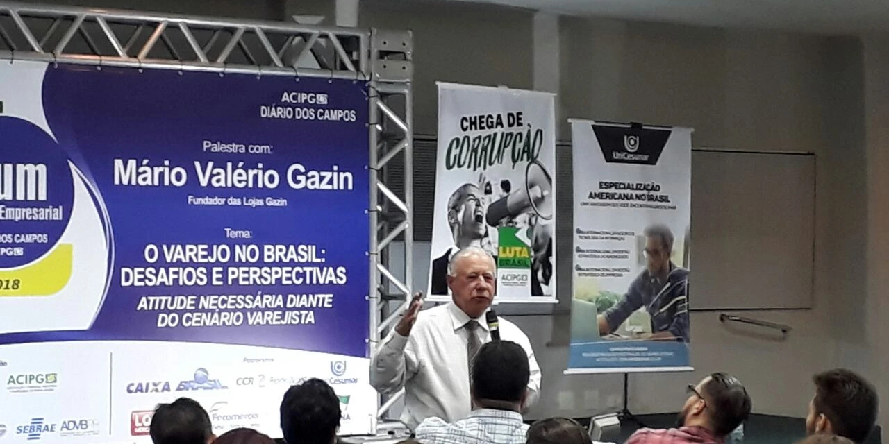 Com mais de 50 anos de experiência à frente da Gazin, o empresário falou sobre o cenário do varejo brasileiro diante dos desafios e perspectivas atuais. Mário destacou as ações necessárias para o sucesso no varejista. De acordo com Wilson de Oliveira, do Diário dos Campos, é uma imensa satisfação conseguir agendar com Gazin para uma explanação no Fórum Empresarial. "O exemplo empreendedor de Gazin é percebido pelas 243 lojas Gazin espalhadas por nove estados brasileiros. Além disto, são cinco indústrias de colchão e estofados, uma indústria de molas e 13 centros de distribuição", comenta Oliveira.