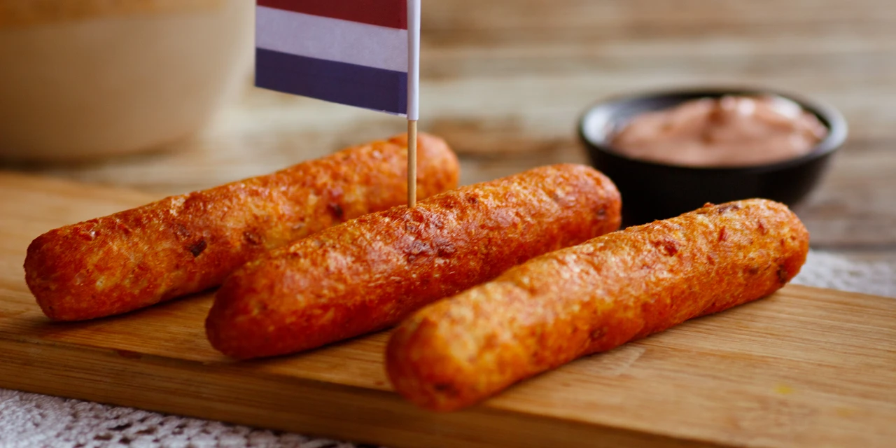 "Uma salsicha feita basicamente de peito de frango, suíno (lombo e bacon), e especiarias muito utilizadas na culinária holandesa, como o coentro e noz moscada”, assim que o chefe de cozinha prepara o frikandel. O tradicional petisco típico holandês com formato que lembra um embutido é servido frito.