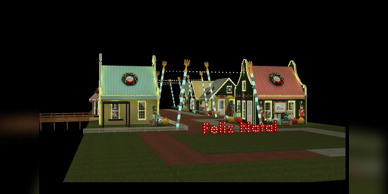 A ornamentação do Parque das Águas, uma das alas museais do Parque Histórico, também ficou por conta da Frísia que está cobrindo os telhados das casinhas e colocando objetos coloridos para tornar o ambiente mágico.