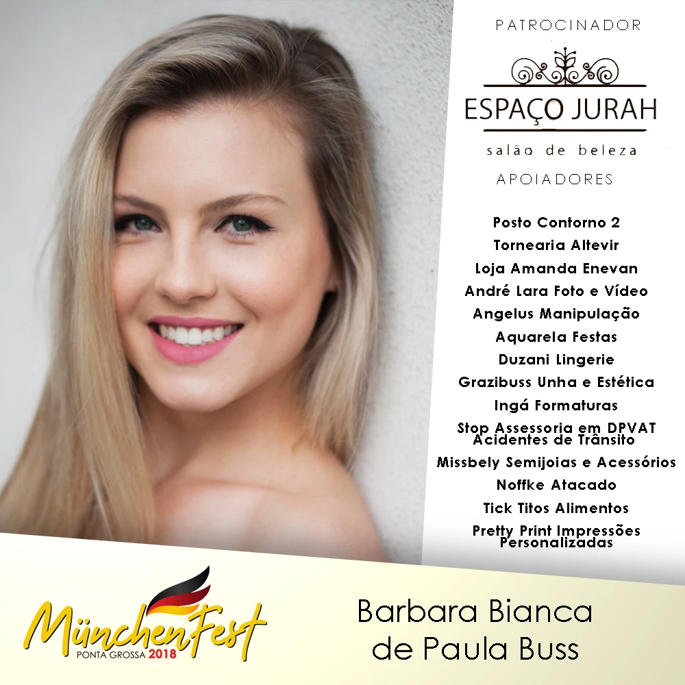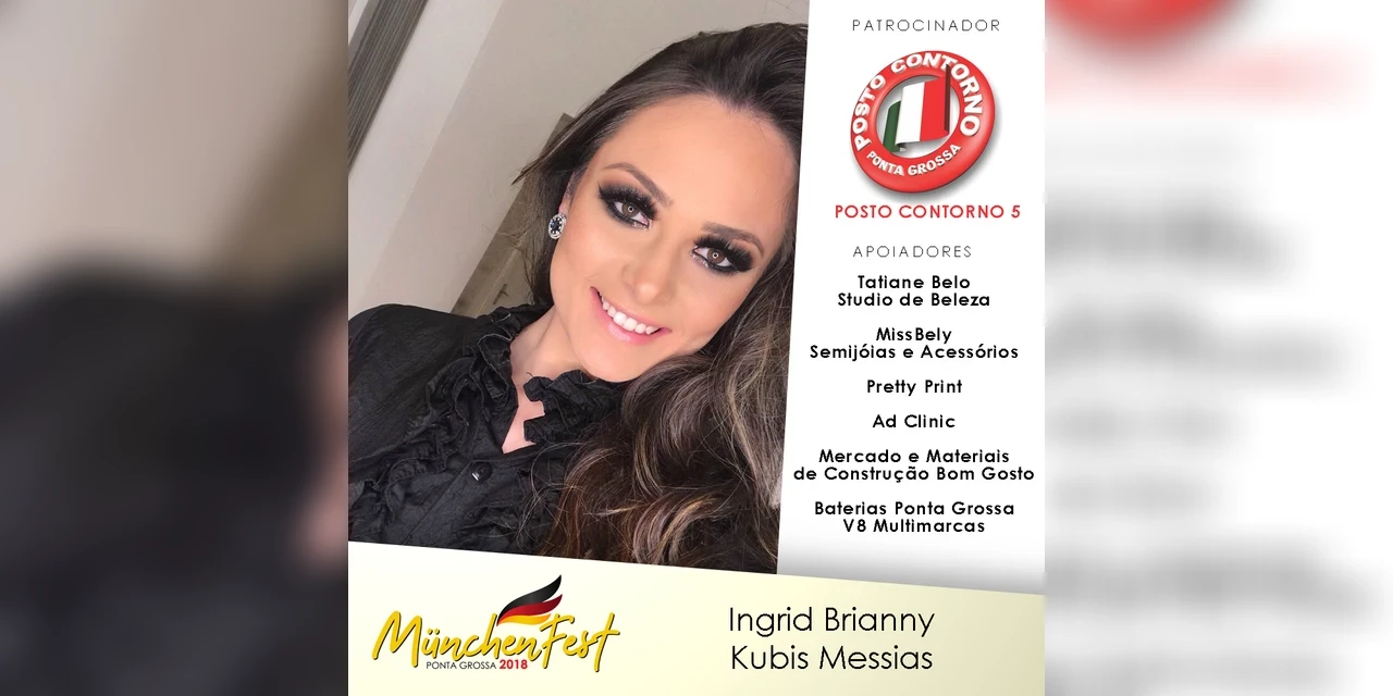 IMPRENSA/Ponta Grossa - A Prefeitura de Ponta Grossa, através das Fundações Municipais de Turismo (Fumtur) e de Cultura (FMC), divulgou, na tarde de hoje (07), as inscritas no concurso da Rainha da MunchenFest 2018. As fotos das candidatas já estão disponíveis na página da Fumtur no Facebook.A competição, que contará com 11 concorrentes, acontece entre os dias 16 e 17 de novembro, no Parque Ambiental.
