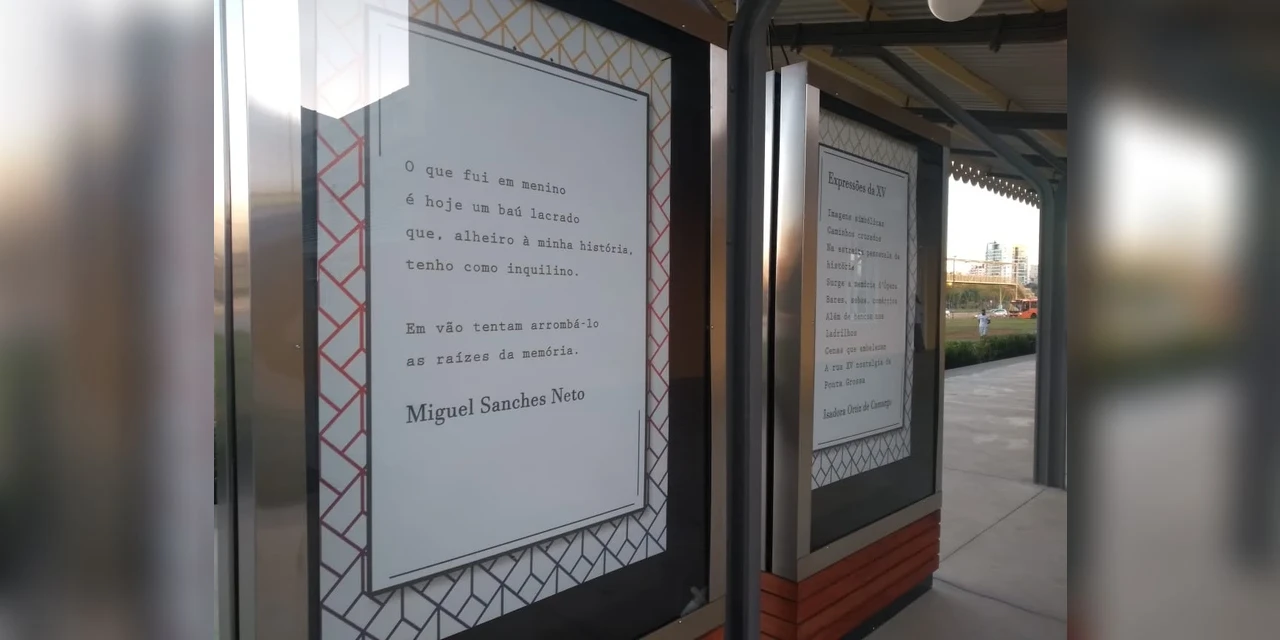 IMPRENSA/Ponta Grossa - Quem estiver passando pela plataforma do SESC Estação Saudade poderá apreciar textos literários de autores paranaenses, com destaque para os escritores ponta-grossenses. A ação poética reúne 11 painéis produzidos pela Prefeitura de Ponta Grossa, por meio da Fundação Municipal de Cultura (FMC), como forma de valorização dos artistas locais.