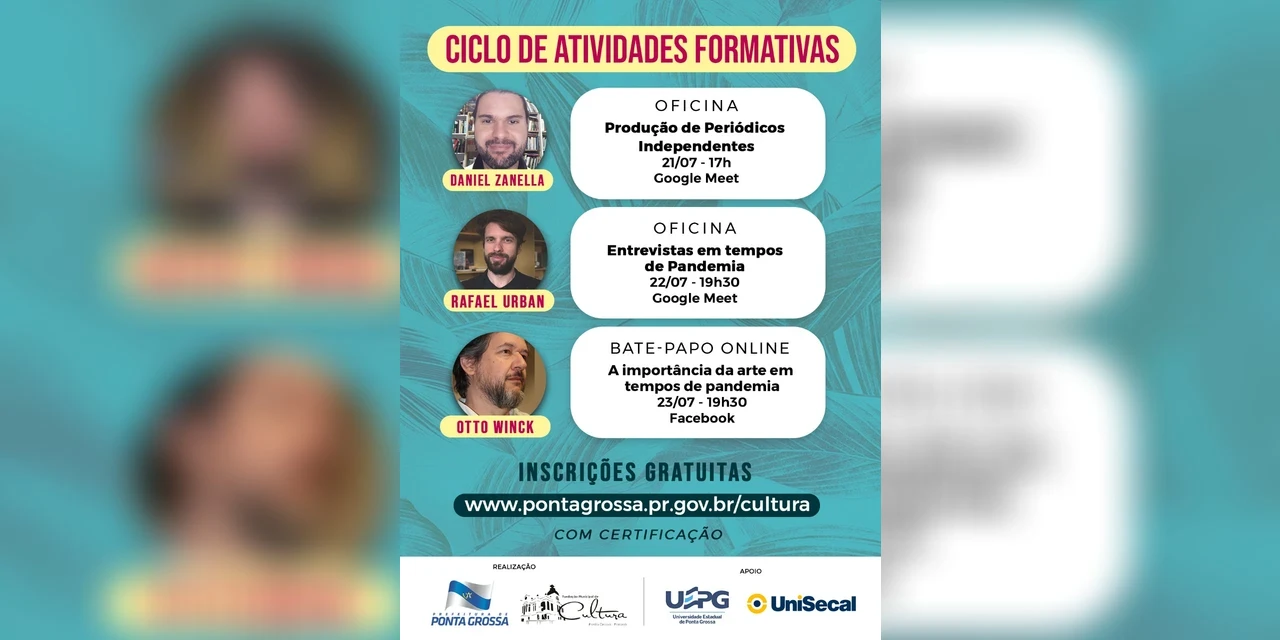 COM ASSESSORIAS - O ciclo de atividades formativas conta com duas oficinas virtuais e um bate-papo online. A atividade será entre os dias 21 e 23 de julho e conta com a parceria da Unisecal e da UEPG.