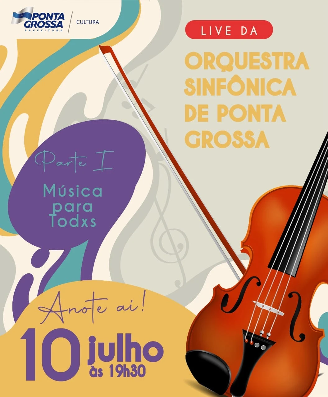 Além de apresentações da Orquestra Sinfônica, o projeto também incluirá apresentações de outros grupos geridos pelo Município como a Banda-Escola Lyra dos Campos e Coro Cidade de Ponta Grossa. "Mesmo durante a pandemia, todos os grupos culturais que são ligados à Fundação Municipal de Cultura seguem em plena atividade e o 'Música para Todxs' é um grande exemplo disso. Nosso principal objetivo com essa iniciativa é mostrar a diversidade musical e qualidade dos nossos artistas. Com base nisso, estamos produzindo vários materiais que devem ser divulgados para a comunidade no decorrer das próximas semanas", destaca o presidente da FMC, Alberto Portugal. Ainda sobre o Concerto, Portugal ressalta a preocupação em oferecer um espetáculo de grande qualidade para a população e seguro para os artistas da Orquestra. "No caso da apresentação deste sábado, o repertório irá incluir diversas canções, sendo privilegiados os instrumentos de corda. Também vale lembrar que o Concerto seguirá as medidas sanitárias de prevenção e combate ao Coronavírus, sem público presencial, podendo ser acompanhado pelas nossas redes sociais.
