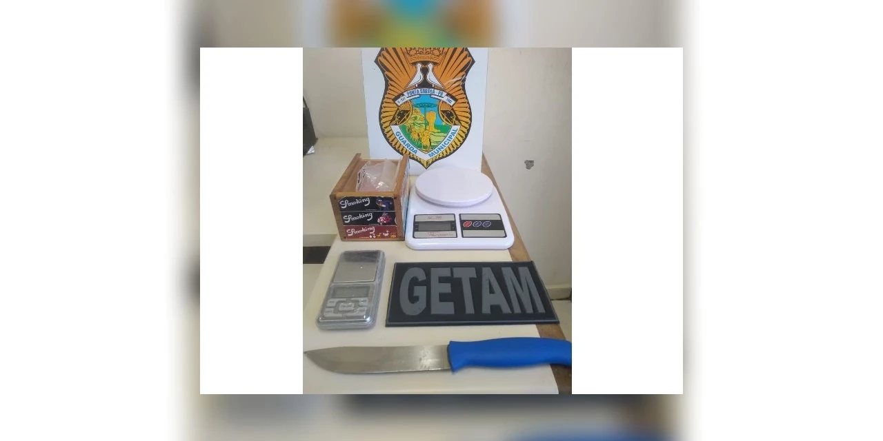 Durante abordagem ao suspeito, na rua Jevert Ribeiro da Fonseca, os guardas consultaram o nome do homem no sistema e identificaram que havia um mandado de prisão em nome dele. Os guardas ainda apreenderam uma balança de precisão, uma faca e várias embalagens com cheiro de maconha, que estavam na casa do abordado.