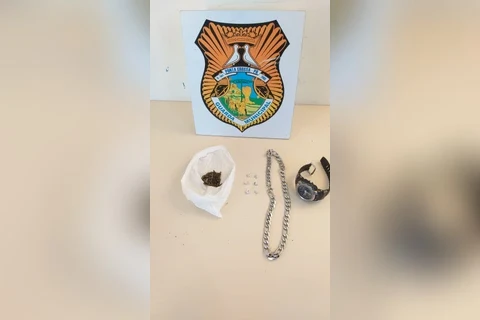 Durante busca pessoal, foram localizadas seis pedras de crack em poder de um dos suspeitos. Na sequência, a equipe verificou que o invólucro dispensado por outro suspeito se tratava de substância análoga a maconha.