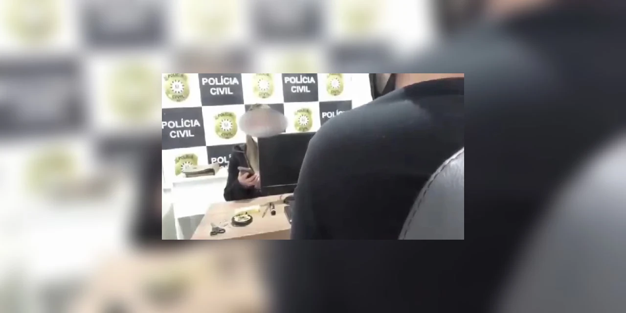 Vídeo 2 - Tentando confirmar a realidade da denúncia, um dos golpistas filma o que seria a mesa do delegado ou escrivão de polícia. Nota-se que os emblemas e credenciais apresentados são da Polícia Civil de São Paulo, mesmo a garota supostamente morando no Rio Grande do Sul.
