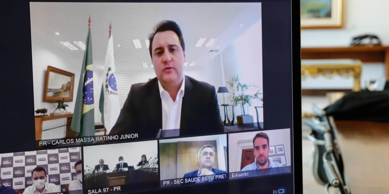 AEN/PR - O governador Carlos Massa Ratinho Junior apresentou ao novo ministro da Saúde, Nelson Teich, a estrutura hospitalar e o plano de ação do Governo do Paraná para enfrentamento à Covid-19. A reunião virtual aconteceu nesta quarta-feira (29), com a participação dos demais governadores do Sul, Carlos Moisés (Santa Catarina) e Eduardo Leite (Rio Grande do Sul).