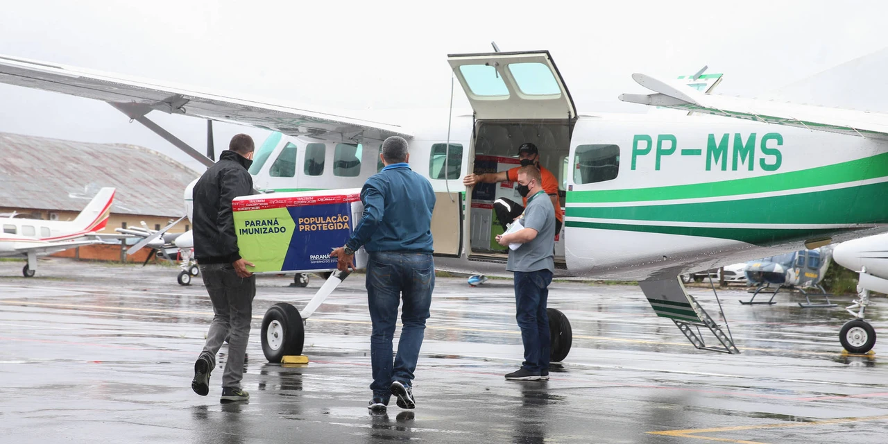 Três aeronaves da frota do Governo do Estado saíram na manhã desta terça-feira (19) com aproximadamente 80 mil doses para distribuição das vacinas no Interior do Paraná. Serão em torno de 15 viagens entre Curitiba e os municípios-sede de algumas regionais de Saúde. As vacinas Coronavac, produzidas pelo laboratório chinês Sinovac em parceria com o Instituto Butantan, serão retiradas nos aeroportos pelas Regionais de Saúde e encaminhadas, logo em seguida, para as prefeituras.