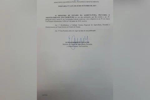 A portaria foi assinada pelo ministro da Agricultura em exercício, Eumar Roberto Novacki, que atendeu pedido do parlamentar para que nenhum dos dois escritórios fossem fechados diante da política de contenção de gastos. “Levamos à equipe do Ministério a importância que as UTRAs, tanto de Ponta Grossa, como de Castro, têm para a região dos Campos Gerais, e nesta quarta-feira vemos o ministro em exercício garantir o funcionamento de ambas, que é muito importante para o nosso setor agropecuário”, declara Sandro.