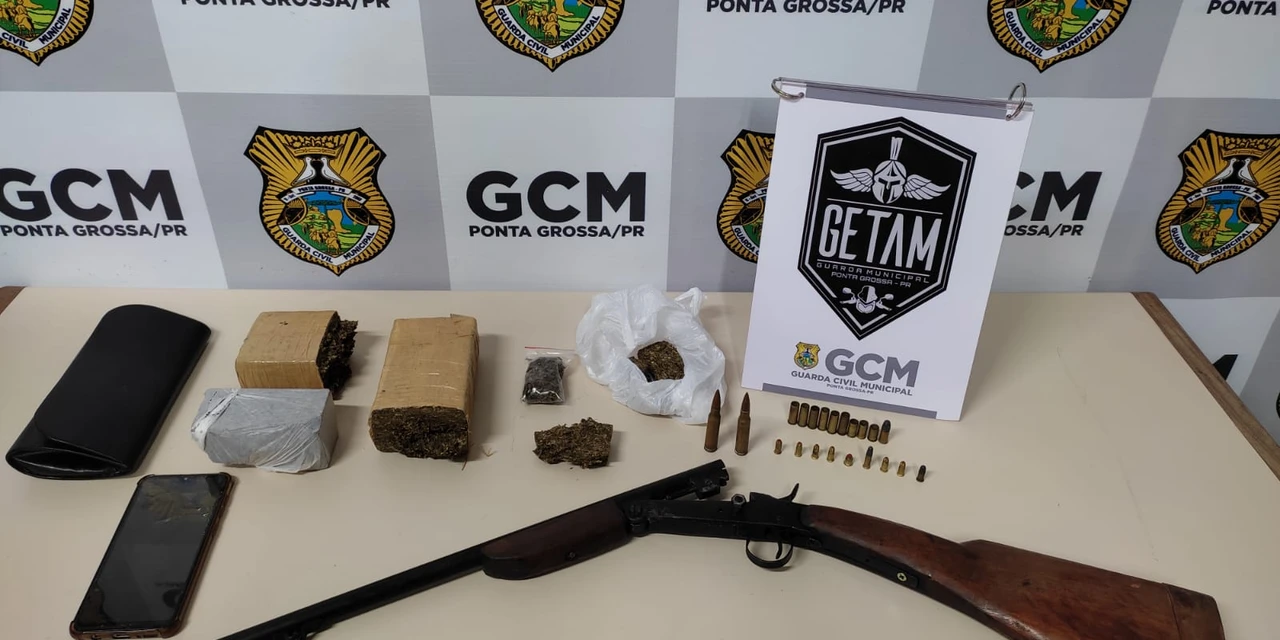 COM ASSESSORIAS - A equipe Getam - Alfa - da Guarda Civil Municipal (GCM) apreendeu, na madrugada de hoje (26), mais de um quilo de drogas e uma espingarda, além de munição, na região do San Martin. Um homem foi preso e encaminhado à 13ª SDP.