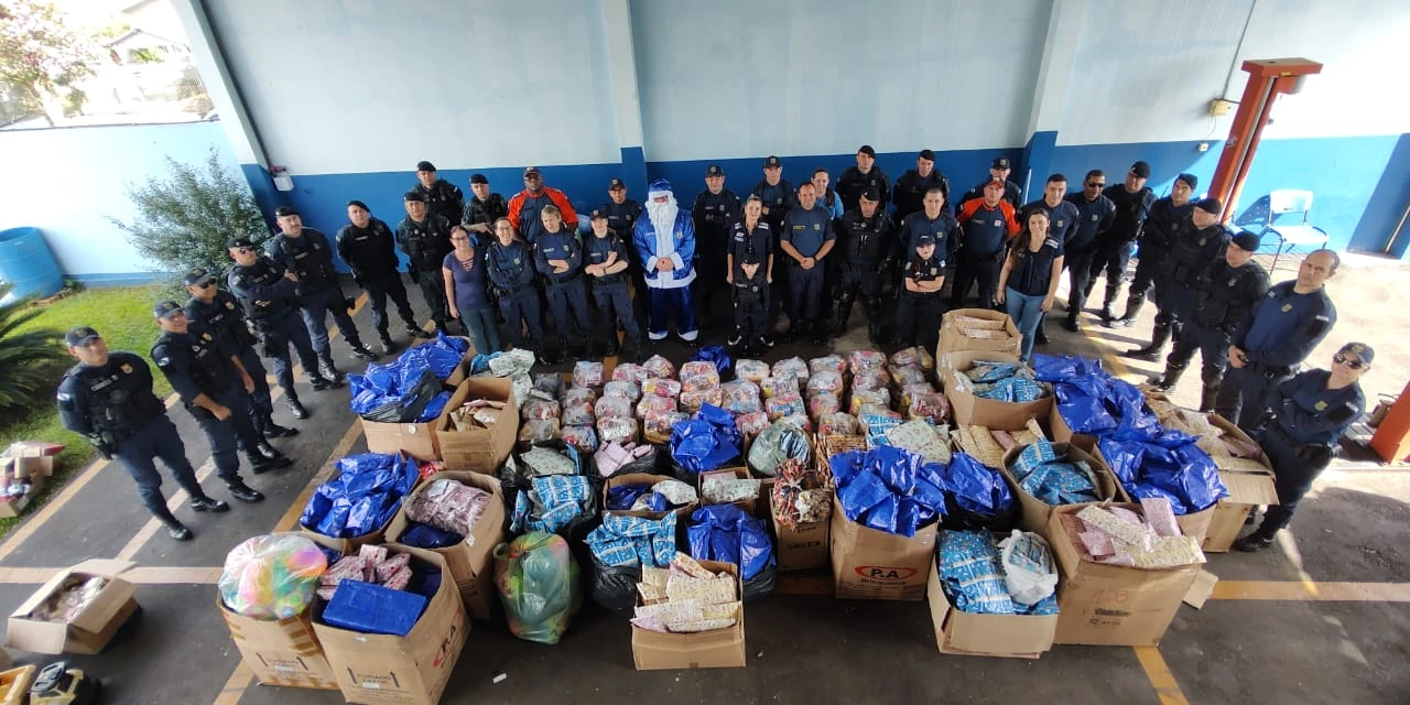 COM ASSESSORIAS - A Guarda Civil Municipal (GCM) de Ponta Grossa promoveu, nos últimos dias, diversas ações de natal junto à comunidade. Com atividades nos bairros e em instituições, os agentes, acompanhados do Guarda Noel, percorreram a cidade levando presentes e cestas natalinas. Também foram realizadas visitas em instituições como o Lar das Vovozinhas, em Uvaranas, onde os guardas realizaram uma tarde de música com os residentes na última terça-feira (20).
