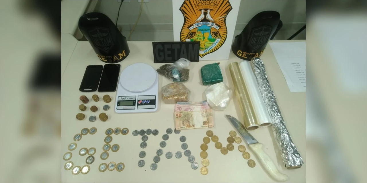 Além das drogas, a equipe também encontrou dinheiro, uma balança, papel filme, papel-alumínio e uma faca que seria utilizada para cortar a droga.