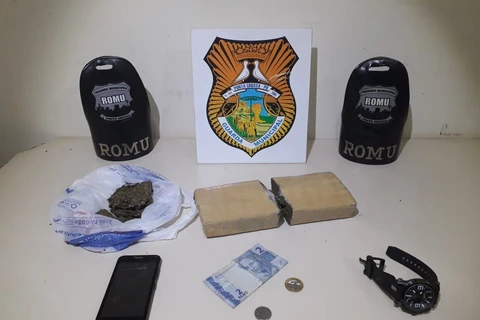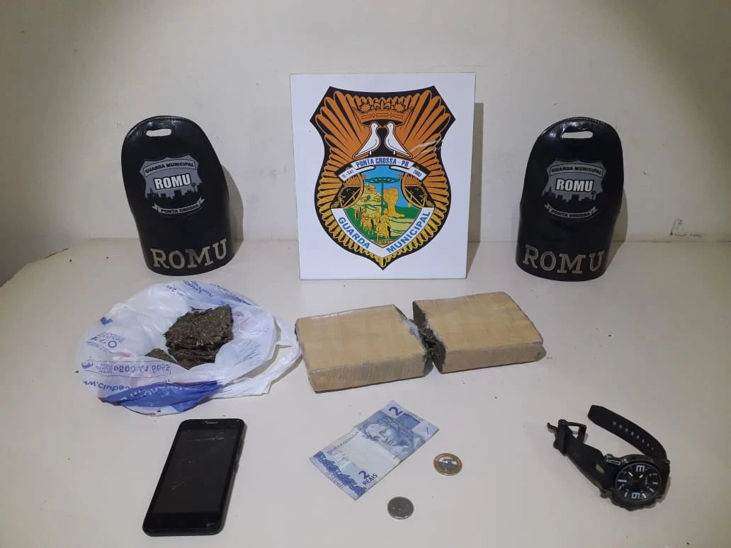 Durante averiguação, um dos agentes da GM retornou para recuperar a mochila, sendo constatada a existência de um quilo de maconha e dois aparelhos de telefone celular.