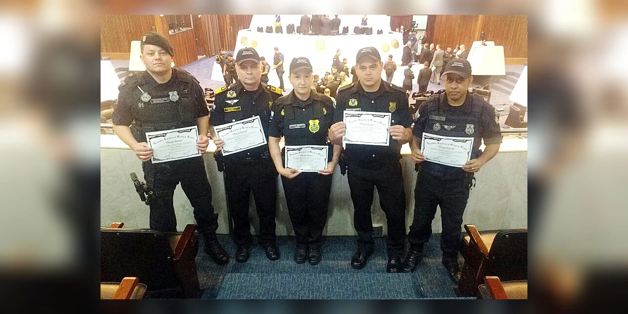 A Guarda Municipal de Ponta Grossa marcou presença em sessão solene realizada pela Assembleia Legislativa do Paraná (Alep) na última segunda-feira (09). Na oportunidade, o Comandante Edson Witek e os Guardas Municipais Maribel Krum, Anderson Machado, Giovani Cardoso e Joílson de Oliveira representaram a instituição durante homenagem ao Dia Nacional da Guarda Municipal. O evento, proposto pelos deputados Ney Leprevost e Ratinho Júnior contou com guardas municipais de diversas cidades do Paraná, representantes das forças de segurança pública e parlamentares.