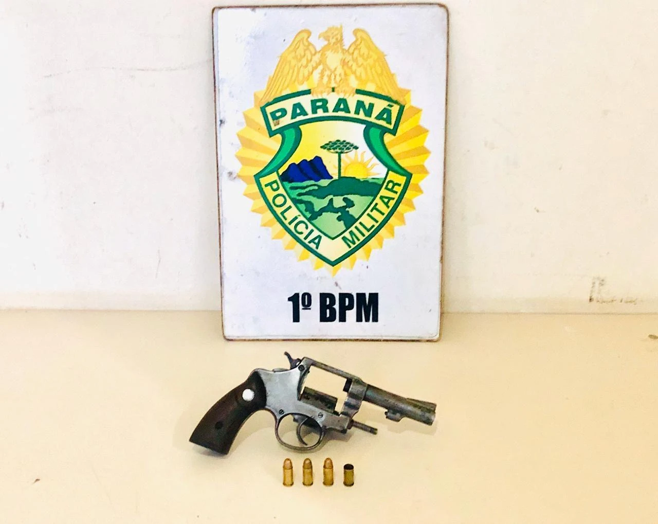 O revólver de calibre 32 estava com três munições intactas e uma deflagrada. O homem foi levado para a delegacia da cidade.