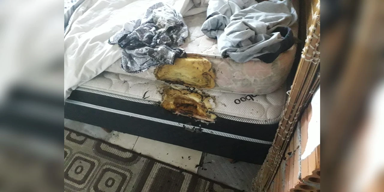 Ela não estava no local, mas o filho do casal, de 13 anos, estava na residência e contou que foi enforcado pelo próprio pai. O adolescente relatou que o homem enrolou uma blusa do pescoço do jovem e tentou enforcá-lo, e logo em seguida ateou fogo no sofá da sala da casa, além de colocar fogo nas roupas e quarto da ex-esposa.