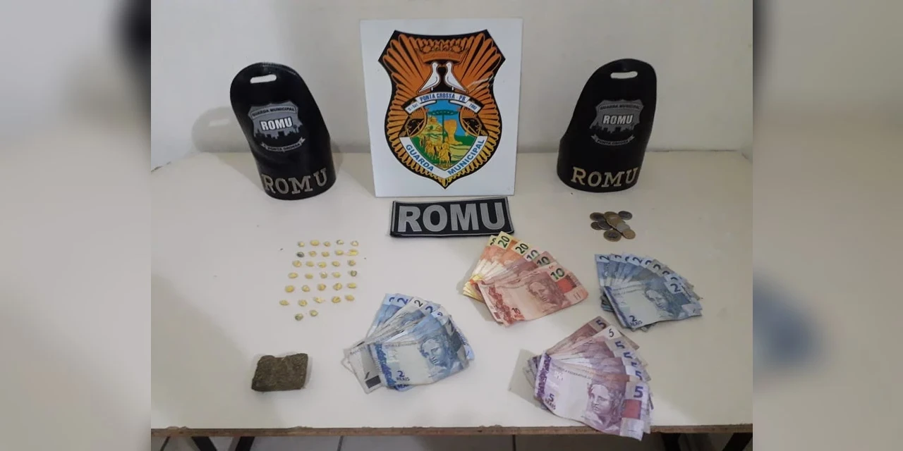 Durante a revista pessoal, a GM encontrou 10 embalagens de crack e R$ 176 em dinheiro nos bolsos do homem. Ao verificar o pacote que foi jogado no chão, os guardas encontraram 22 pedras de crack e 20 gramas de maconha.