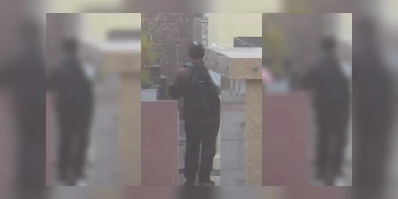 No cemitério, os guardas ouviram um barulho e localizaram o suspeito. Ele tentou fugir pulando o muro, mas acabou caindo e foi abordado.