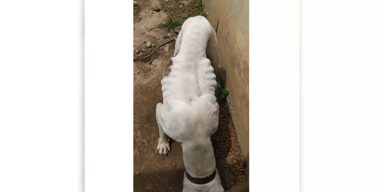 De acordo com a Polícia Civil, o cachorro estava em avançado estado de desnutrição e desidratação, com os ossos da pelve e costela evidentes, sendo mantido em um ambiente insalubre e precário.