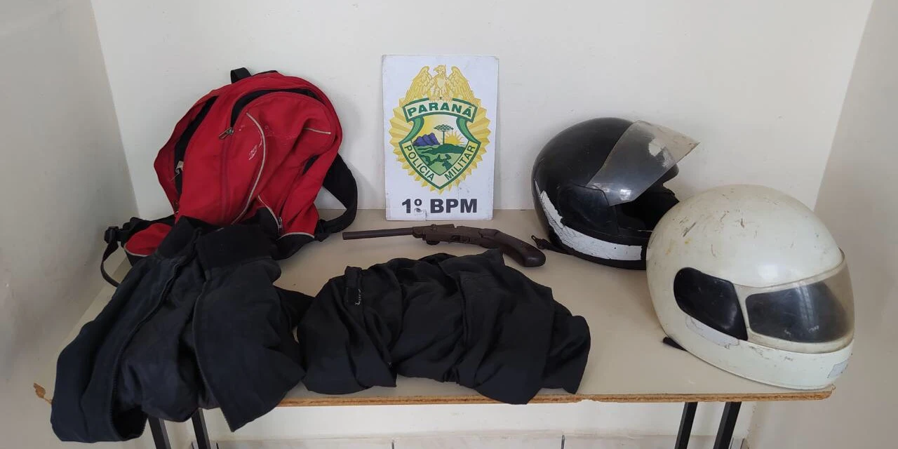 A PM foi acionada e conseguiu localizar os assaltantes minutos depois. Ao perceberem a presença dos policiais, os criminosos fugiram para um matagal. No carro que eles utilizaram no roubo, a polícia encontrou uma garrucha calibre 22 e celulares.