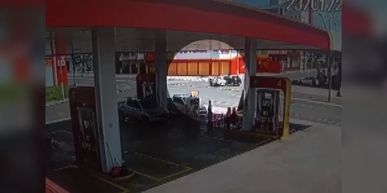 Uma câmera de segurança registrou a batida, no domingo (23). Os ocupantes do carro envolvido na batida não ficaram feridos. Assista ao vídeo acima.