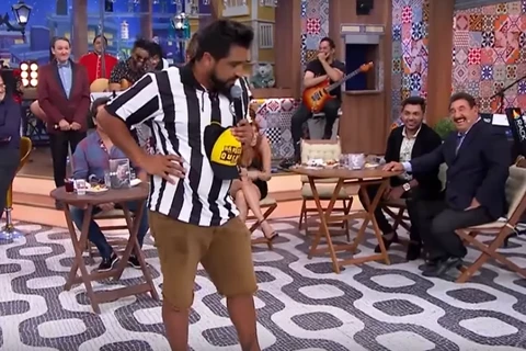 COM ASSESSORIAS - O humorista paranaense Hallorino Jr participou do programa do Ratinho na noite de quarta-feira (27). Ele fez parte do quadro 'Boteco do Ratinho', que também contou com a participação de Luiza Possi, Fernando e Sorocaba, Daniel e Edu Braga. Hallorino interpretou o personagem 'Carmo'.