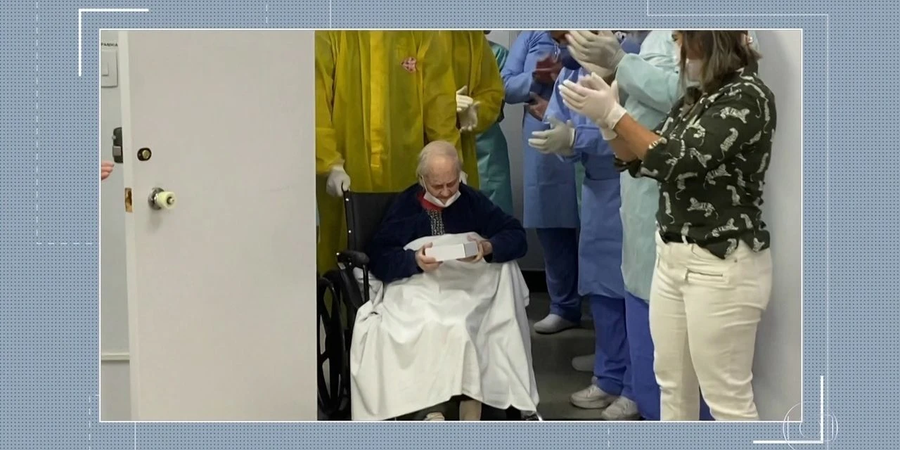 G1 - Dona Luiza, de 103 anos, deixou o hospital de campanha de São Caetano do Sul sob aplausos nesta quarta-feira (13) depois de ter ficado quinze dias internada na enfermaria da unidade com coronavírus. Na saída, médicos e enfermeiros formaram um corredor pra celebrar a recuperação da idosa e lhe deram um presente.