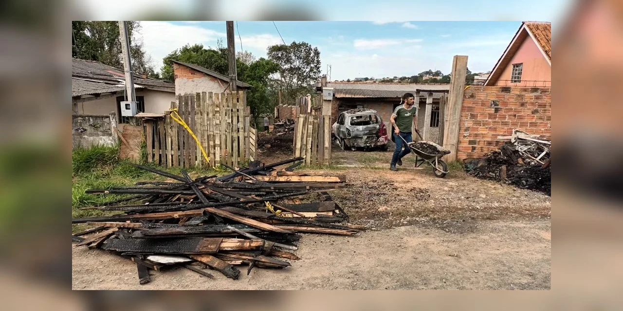 A casa, de madeira, foi completamente destruída pelas chamas. O fogo também atingiu o carro da irmã de Aristides, que estava estacionado ao lado da residência.