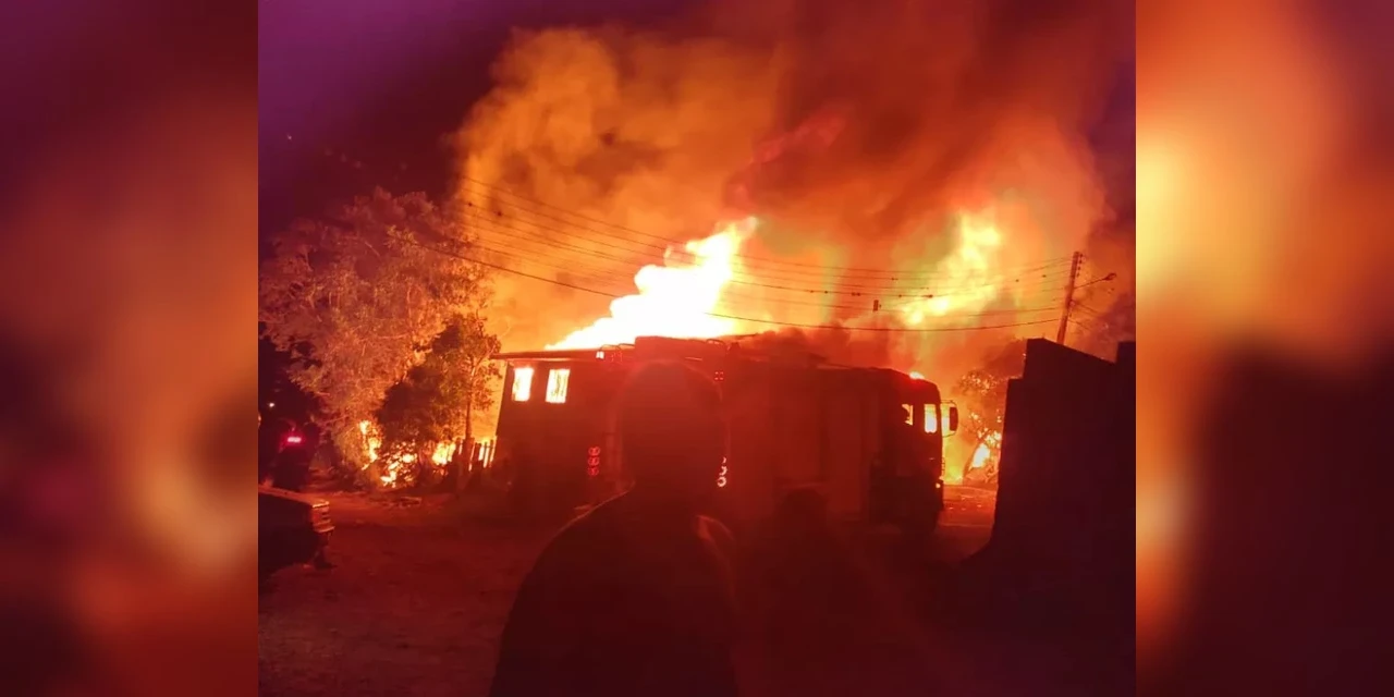 Dez bombeiros fizeram o atendimento à ocorrência. Quatro casas eram de madeira, conforme a polícia, e uma de alvenaria com madeira.