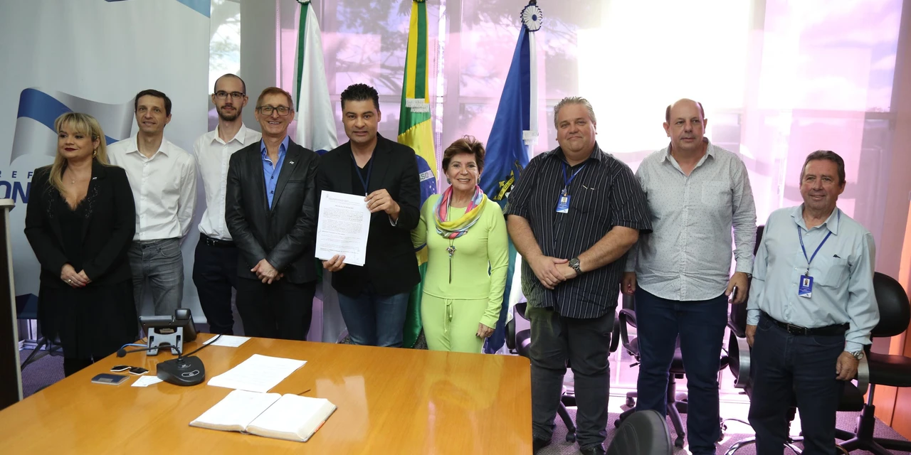 Gustavo Ban/Ponta Grossa - Em coletiva de imprensa realizada na manhã desta segunda-feira (29), a Prefeitura Municipal de Ponta Grossa através da Secretaria de Indústria, Comércio e Qualificação Profissional (SMICQP), assinou o protocolo de intenções com a empresa Ecopainéis AS Tecnologia e Inovação e Construção Civil, mais um investimento que deve se instalar no Distrito Industrial do município.