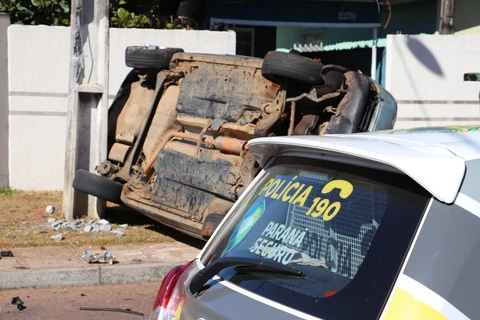 Os infratores foram flagrados por Policiais Militares do 1º BPM, enquanto trafegavam pela região num veículo roubado. Ao receberem ordem de parada, empreenderam fuga por vários quarteirões, até perder o controle da direção, vindo a capotar.