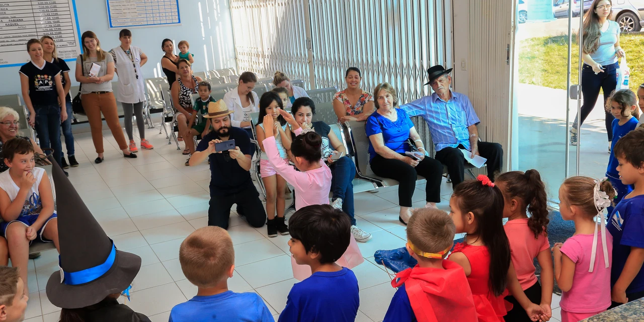 IMPRENSA/Ponta Grossa - Os alunos da Escola Municipal Prefeito Dr. Amadeu Puppi realizaram mais uma ‘Invasão Poética’ na Unidade Básica de Saúde (UBS) Zilda Arns, no Parque Nossa Senhora das Graças, nesta segunda (15). O projeto, promovido pela Secretaria Municipal de Educação, desenvolve a performance dos estudantes e leva música e poesia para o público através de intervenções artísticas na comunidade.