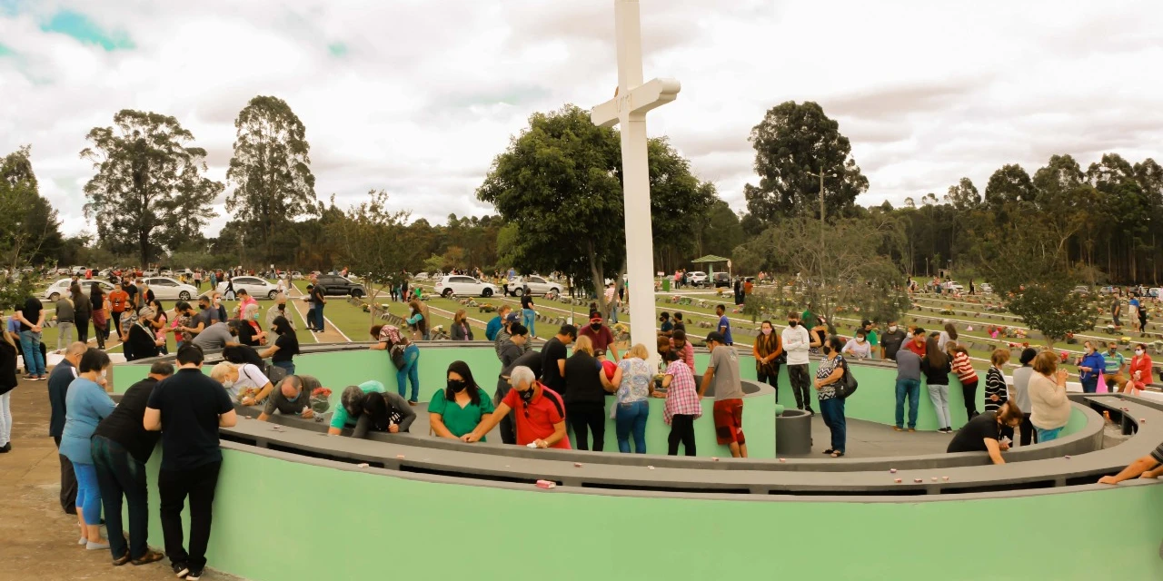 COM ASSESSORIAS - A celebração dos fiéis defuntos, Finados, é muito querida de todo o povo brasileiro, que costuma ir aos cemitérios, enfeitar túmulos e levar sua prece. Todos os anos, as paróquias que têm campos santos em seus territórios agendam ali missas neste dia, como também no Cemitério Parque Jardim Paraíso, em Uvaranas, espaço administrado pela Diocese de Ponta Grossa. No cemitério-parque, serão duas missas: às 10 horas, celebrada pelo bispo Dom Sergio Arthur Braschi, e, às 15 horas, com o padre Jaime Rossa, diretor-presidente do cemitério. Haverá celebração ainda no Cemitério de 7 Saltos de Cima, em Itaiacoca; São João, na Vila Marina.