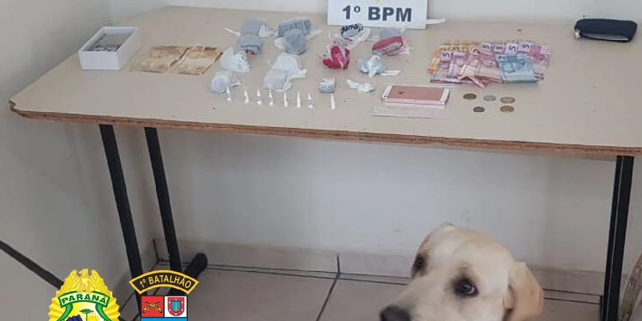 De acordo com a PM, durante revista pessoal, os policiais encontraram com a abordada um total de três embalagens com maconha, oito pinos de cocaína, além de duas notas falsas de R$ 50. A equipe policial seguiu até a residência da jovem e com o auxílio da cachorra Luna, que faz parte do batalhão da PM, foi localizado mais maconha no local, além de uma balança de precisão e dinheiro.