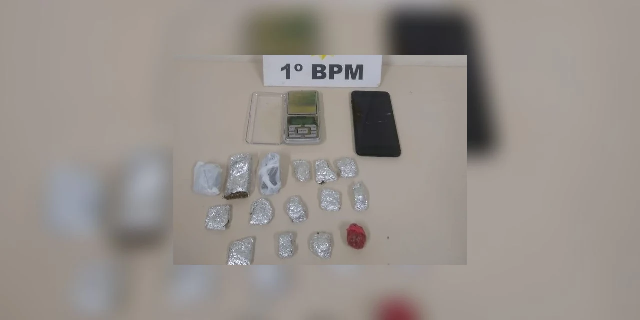 De acordo com a polícia, o jovem foi abordado e flagrado com duas buchas de maconha. Após ser apanhado com a droga, ele relatou aos policiais que tinha mais drogas na sua casa. No endereço foram encontrados outros 13 invólucros com a mesma substância.