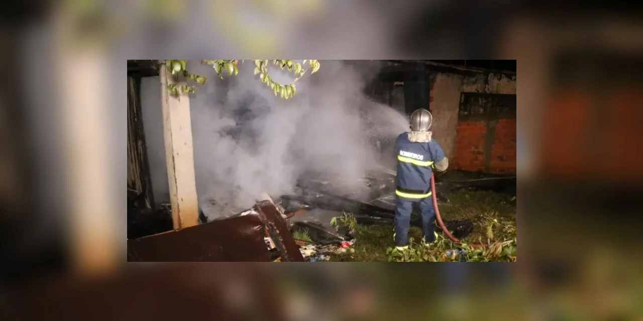 Uma casa ficou totalmente destruída após pegar fogo na noite de terça-feira (27), em Ponta Grossa, nos Campos Gerais do Paraná.