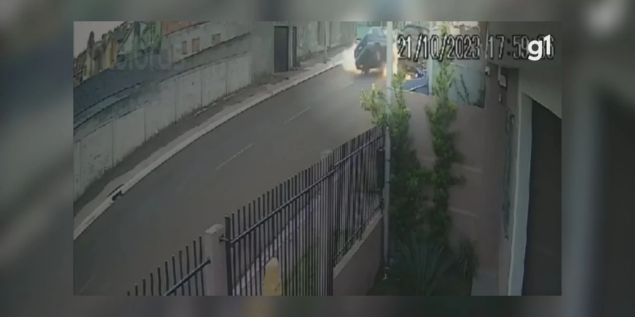 Uma câmera de segurança registrou imagens do acidente, que aconteceu no final da tarde na rua Paulo Grott, em Uvaranas.