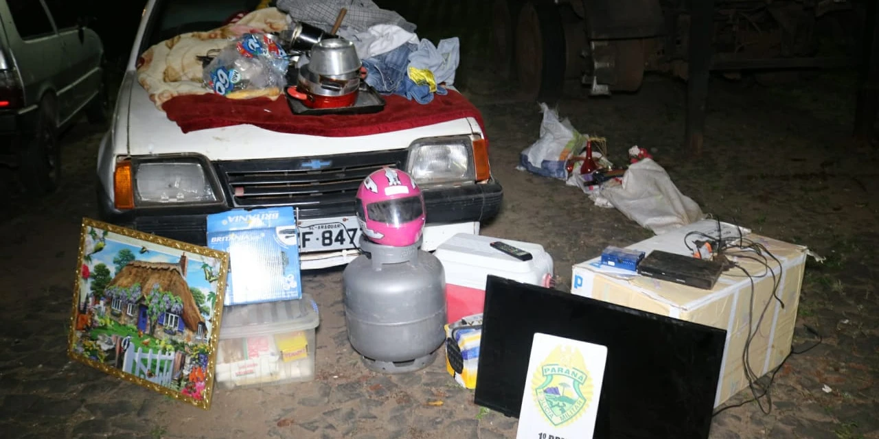 Com os outros dois passageiros, um casal de 23 e 24 anos, foi encontrado um aparelho televisor, um DVD, caixas de cerveja, panelas, roupas e outros diversos objetos. Segundo a PM, todos os produtos foram furtados em três casas da região, todas arrombadas e invadidas pela porta dos fundos.