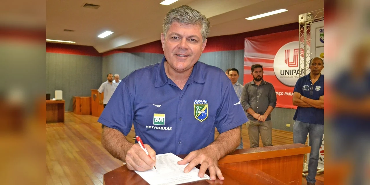 Presidente da Liga de Handebol do Paraná, Roberto Ferreira Niero: “A partir de 2019, mais de 70 equipes, nossos clubes e seus atletas terão oportunidade de usar um material de qualidade importado da Alemanha”. (Diego Reis/LHPR)