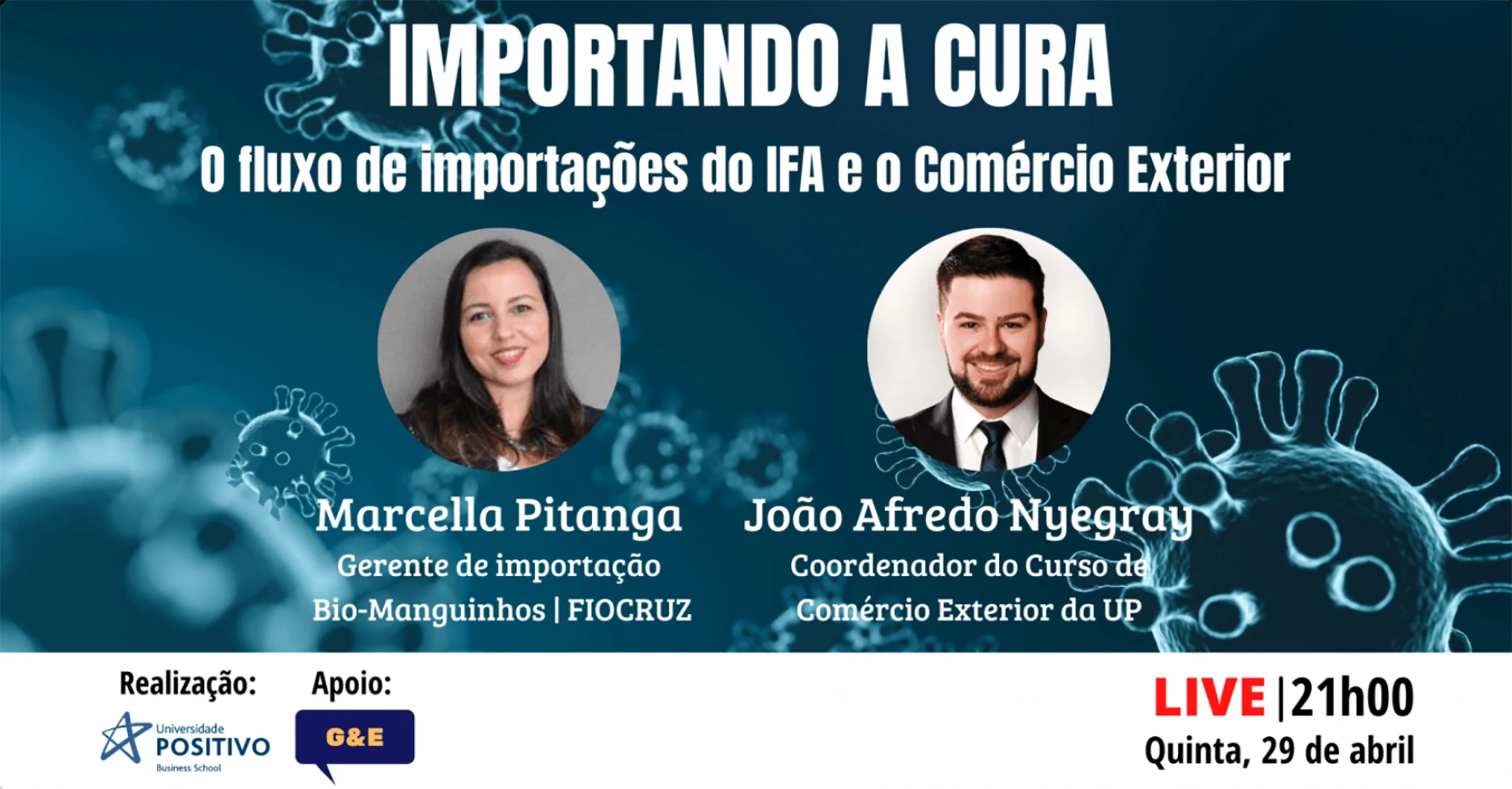 Promovido pelo curso de Comércio Exterior da Universidade Positivo, a palestra é voltada a estudantes de Comércio Exterior, Administração, Relações Internacionais, Ciências Econômicas e Ciências Contábeis, além de profissionais que atuem no mercado internacional ou que tenham interesse na área. “Todas as profissões são relevantes no combate à pandemia, mas queremos mostrar como a interface com os negócios internacionais é importante a todo momento. Por isso, nosso objetivo é entender como funciona o fluxo de importações de um item de saúde e o processo de liberação junto aos órgãos reguladores nacionais, além de mostrar como o Comércio Exterior e os Negócios Internacionais podem ser aliados tanto na importação de tecnologias e medicamentos prontos, quanto de seus insumos produtivos”, explica o coordenador de Comércio Exterior, João Alfredo Lopes Nyegray.