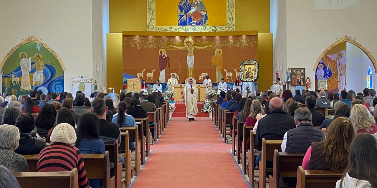 COM ASSESSORIAS - A igreja, o altar e o ambão da nova matriz da Paróquia Nossa Senhora do Perpétuo Socorro, em Castro, foram abençoados ontem (26) pelo pároco, padre Cristiano Marcos Rodrigues, em uma celebração que contou com uma homenagem à padroeira feita por 18 crianças da Catequese e a explicação sobre as principais partes do ícone da santa. Na imagem de Nossa Senhora do Perpétuo Socorro estão incrustadas as relíquias de Santa Teresa de Calcutá e São João Paulo II. Elas estão no véu de Maria, embelezando ainda mais a estrela-guia e a estrela menor.