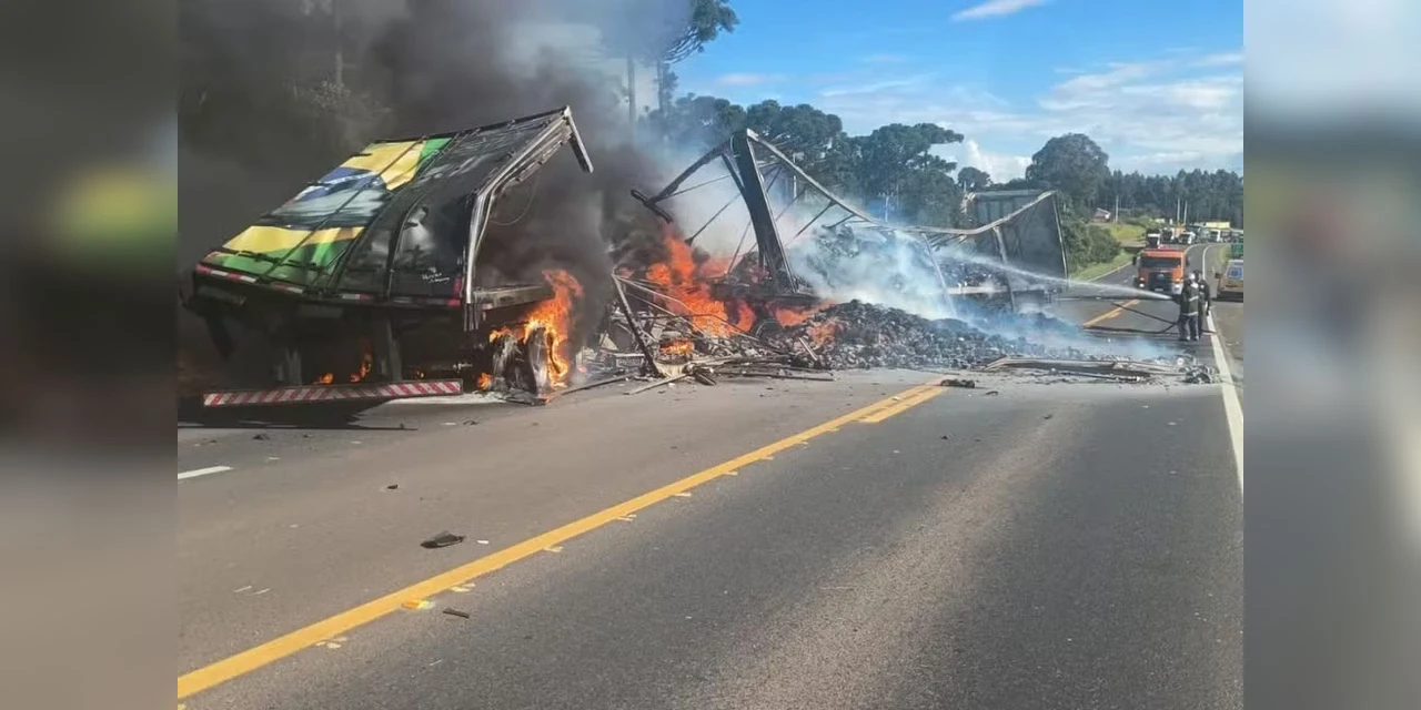 Um tio e um sobrinho morreram após os caminhões deles baterem de frente e pegarem fogo na tarde desta terça-feira (20), no km 222 da BR-373, entre Imbituva e Ponta Grossa, na região dos Campos Gerais do Paraná.