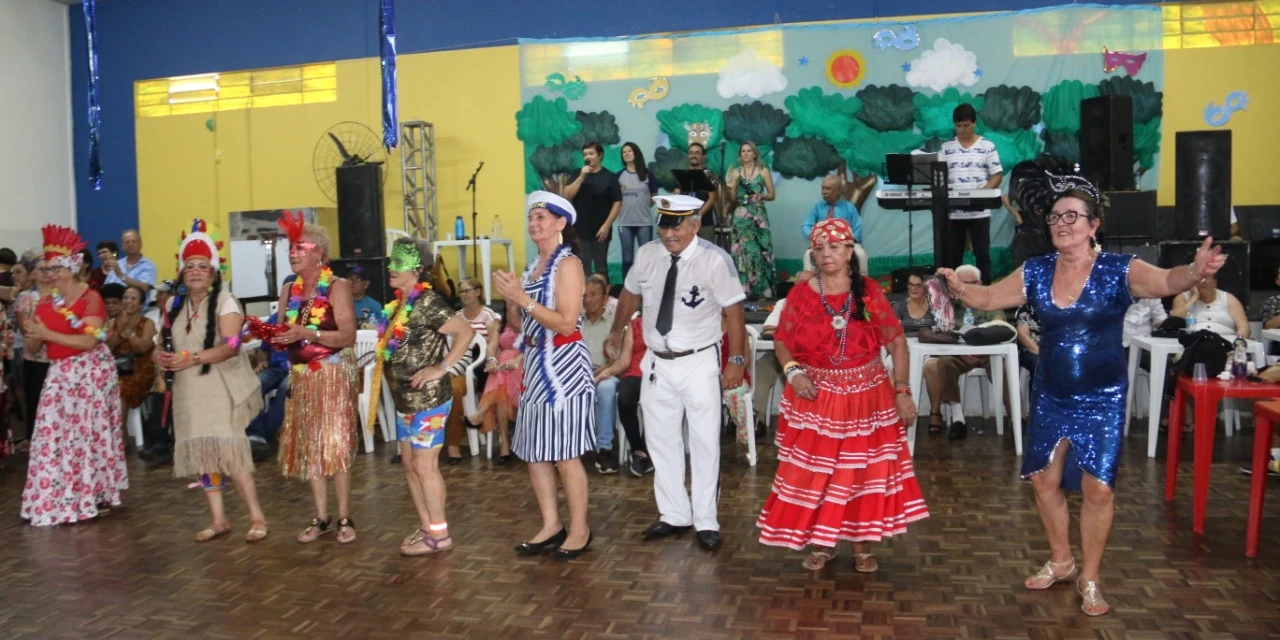 IMPRENSA/Ponta Grossa - A tarde de hoje (19), no Centro de Convivência do Idoso, na Nova Rússia, foi marcada por muito brilho, confetes e sorriso no rosto. Idosos se reuniram para festejar a festa popular do Carnaval, através de um baile promovido pela Fundação de Assistência Social (FASPG) e da Secretaria Municipal de Políticas Públicas Sociais (SMPPS). A animação estava por todo lado, desde roupas até a estrutura.