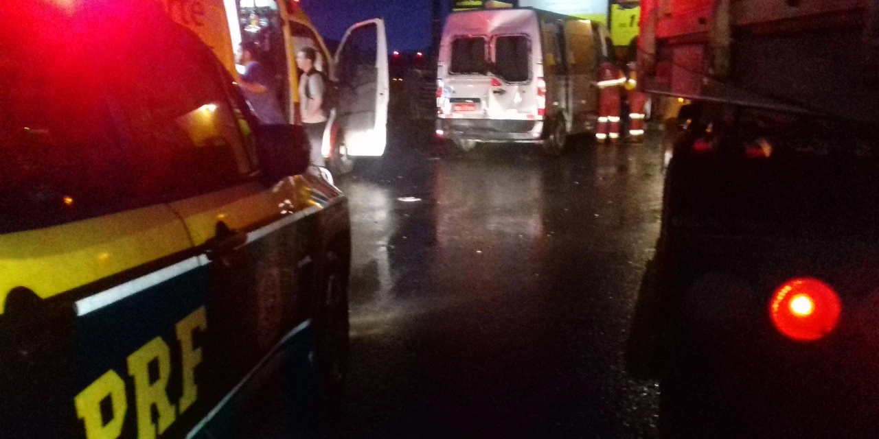 REDAÇÃO/Correio dos Campos - Uma colisão traseira envolvendo um micro-ônibus e um caminhão foi registrada no final da tarde desta terça-feira (13), na altura do quilômetro 496 da BR 376, em Ponta Grossa. De acordo com a Polícia Rodoviária Federal, chovia no momento do acidente, que aconteceu por volta das 18h20.