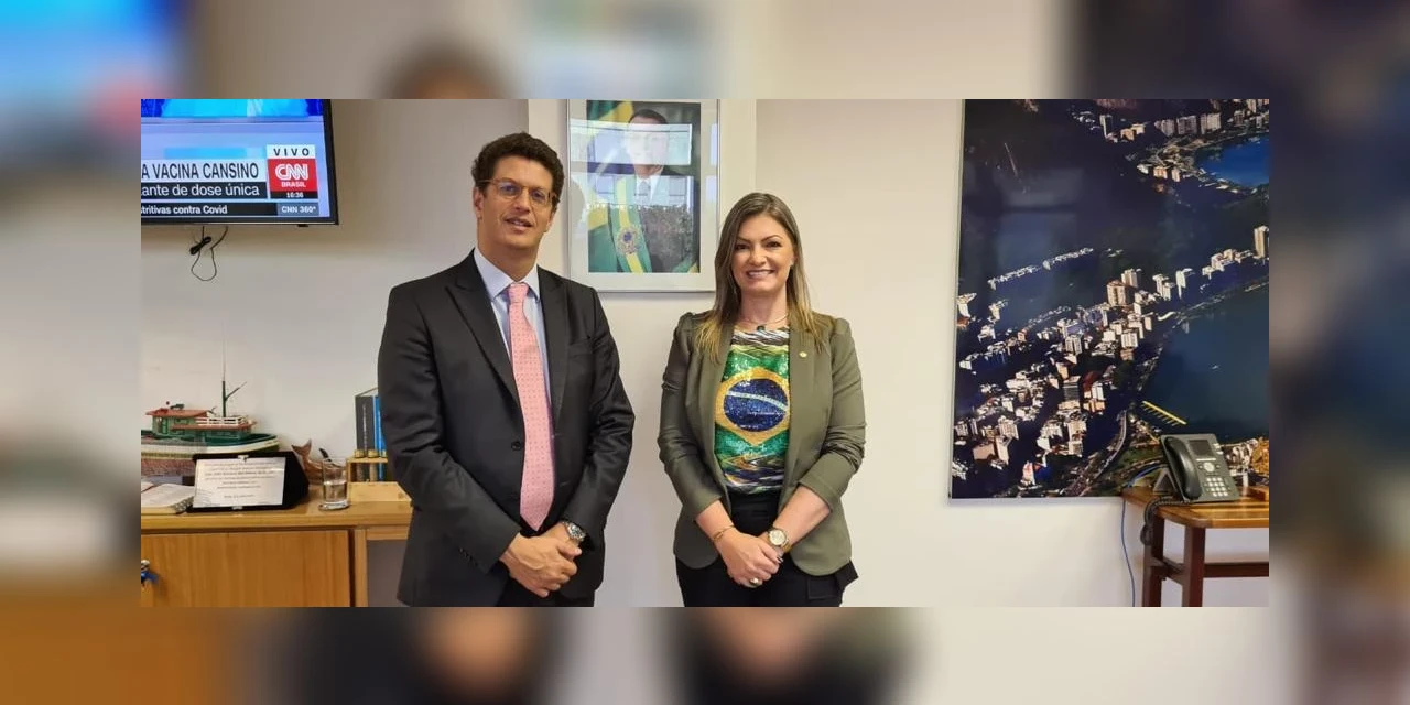 COM ASSESSORIAS - O ministro do Meio Ambiente, Ricardo Salles, recebeu nesta quarta-feira, dia 16, a deputada e Presidente da Comissão de Agricultura, Pecuária, Abastecimento e Desenvolvimento Rural (CAPADR) da Câmara dos Deputados, deputada federal Aline Sleutjes. Salles tratou de assuntos relacionados ao desenvolvimento sustentável da agropecuária brasileira e sobre possíveis soluções para os conflitos existentes nas unidades de conservação.