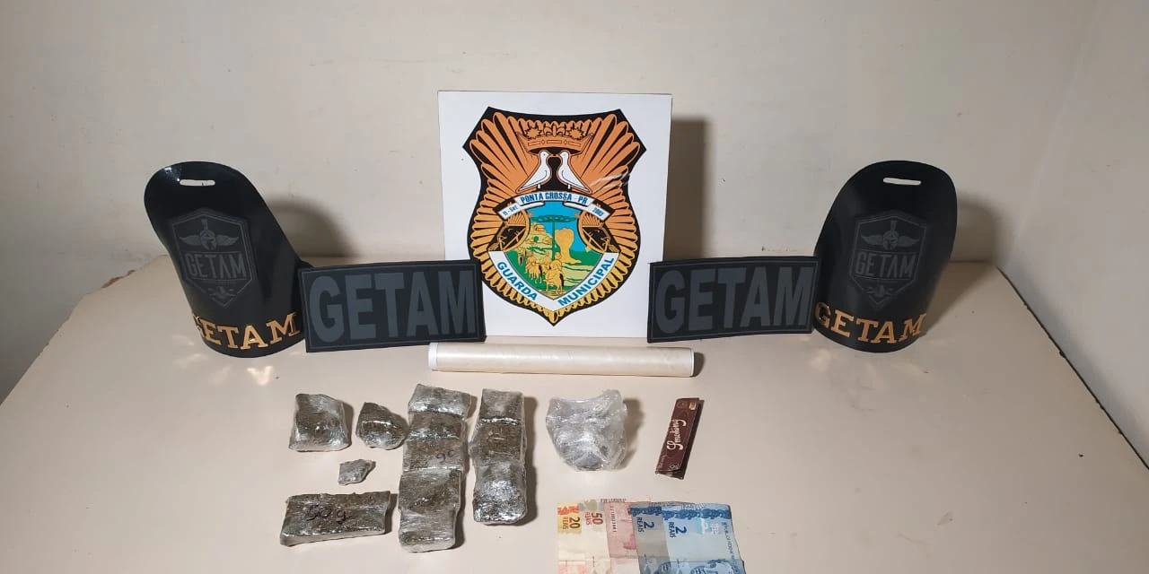 Os guardas abordaram o rapaz logo em seguida e encontraram com ele 50 gramas de maconha e dinheiro. A equipe então seguiu até a casa do jovem para buscar um documento de identificação, e a avó do rapaz, autorizou que os guardas fizessem buscas na residência para localizar mais drogas.