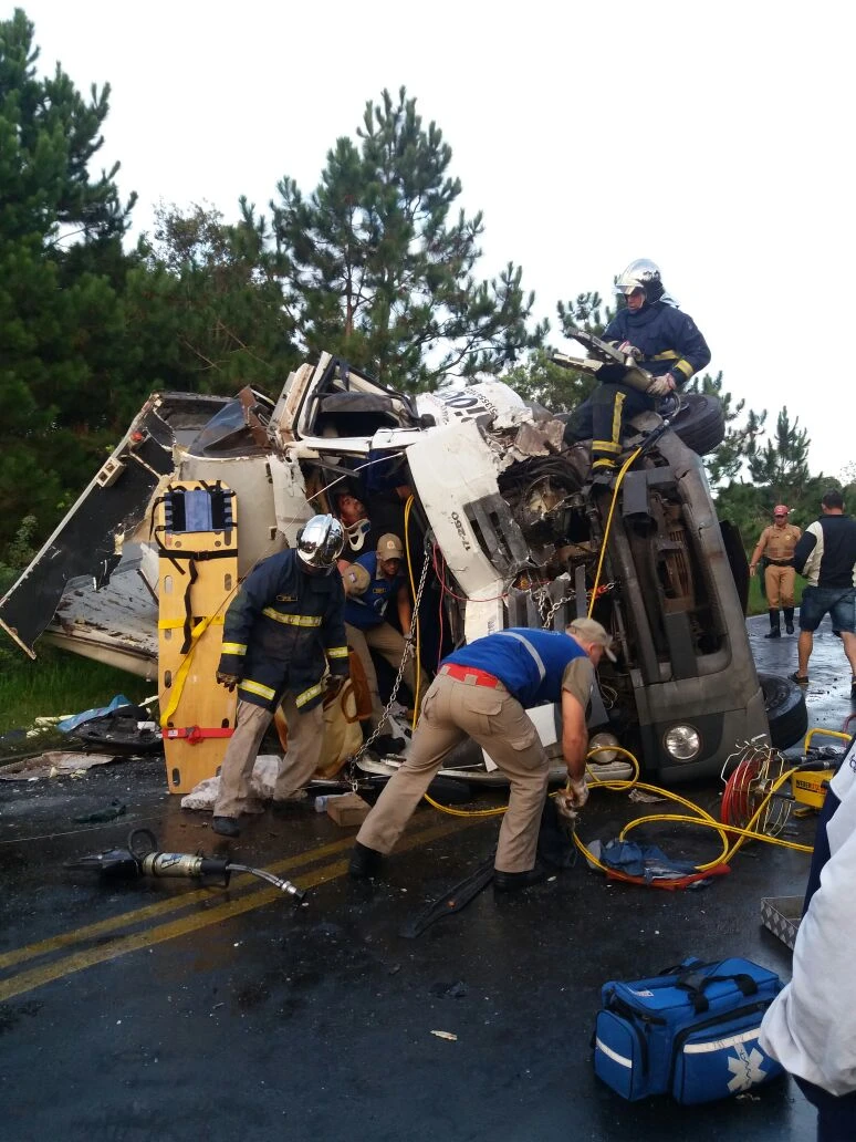 A colisão aconteceu perto das 6 horas de hoje, perto do Rio Caniú, em um trecho de pista simples que ligas os municípios de Palmeira e Ponta Grossa. De acordo com a Polícia Rodoviária Estadual, os motoristas dos dois veículos ficaram presos às ferragens.